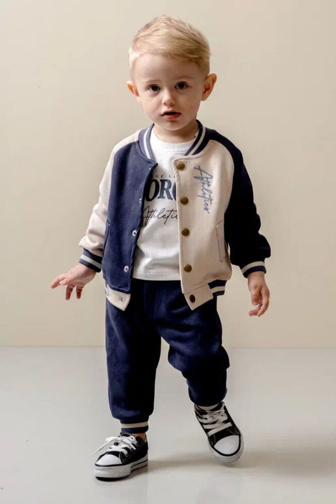 10069 Bebek Athletic Kolej Mont Çıtçıtlı 3'lü Takım * Kumaş İçeriği ; %100 Pamuk * Ürün İçeriği ; 3 parçadan oluşmaktadır. Ceket, Body ve Alt * Bu üründe yüksek kaliteli pamuk kullanılmıştır. Doğaya duyarlı, bebek cildi ile uyumlu. Bebeğiniz için özenle tasarlandı. * Bebeğiniz için üretilen bu ürün % 100 Pamuk ipliği ile dokunmuştur. kullanılan her malzeme antialerjik olup, hassas bebek cildi ile uyumludur. * Kullanımı oldukça rahattır. * Yumuşak ve pamuklu dokusu sayesinde bebeğinizin cildi ile uyumludur. * Modern tasarımı ile bebeğinize şıklık katar. * 30 derecede ters çevirerek yıkamanız önerilir. * Orta sıcaklıkta ütülemeniz tavsiye edilir. * Ürünlerimiz bebeğinizin sağlığı düşünülerek birinci sınıf hammaddelerden üretilmiştir. * Bebeğiniz için zararlı kimyasallar içermez.