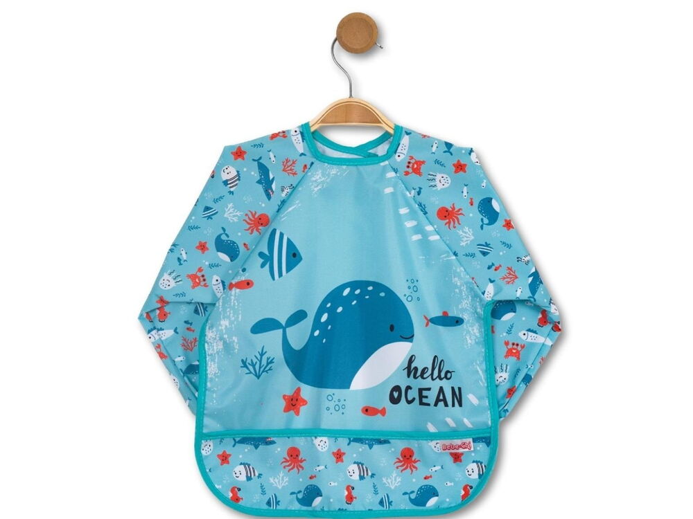202505 Bebek Balina Desenli Cepli Uzun Kollu Giydirmeli Mama Önlüğü * Bebechi Uzun Kollu Giyilebilir * Sıvı Geçirmez * Aktivite ve Mama Önlüğü 6-24 AY