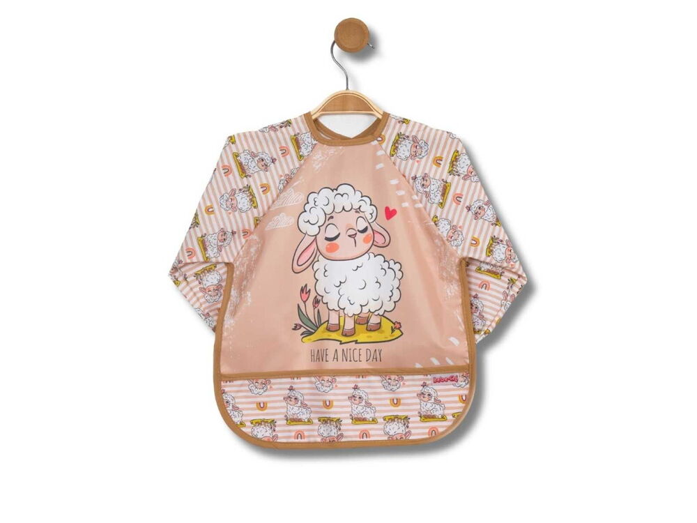 202506 Bebek Kuzu Desenli Cepli Uzun Kollu Giydirmeli Mama Önlüğü * Bebechi Uzun Kollu Giyilebilir * Sıvı Geçirmez * Aktivite ve Mama Önlüğü 6-24 AY