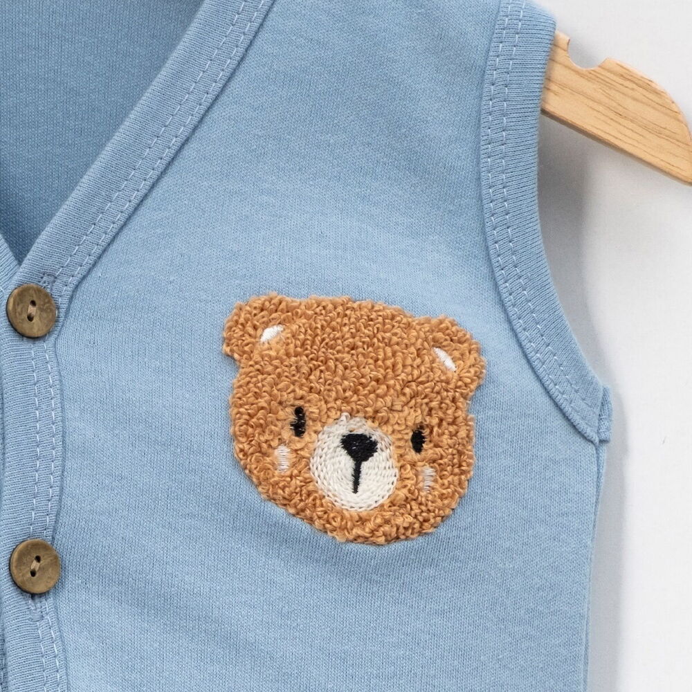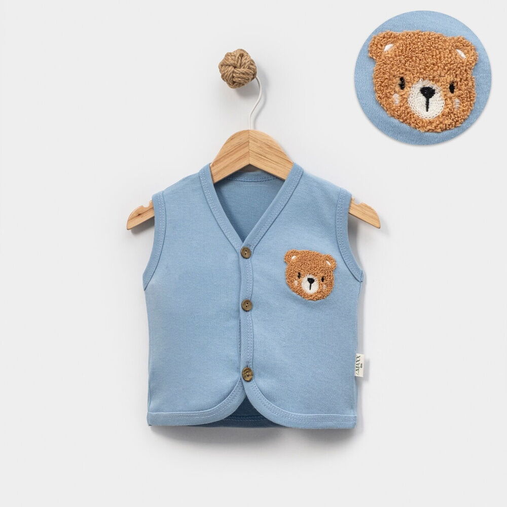 2160LV Bebek Süzene Ayıcıklı Yelek * Ürün tek parçadan oluşmaktadır. * Ürün %100 pamuk kumaştan üretilmiştir. * Yumuşak kumaş dokusuna sahiptir. * En üst kalite baskı ve detaylara sahiptir. * Regular kalıptır. * Modern tasarımı ile bebeğinize şıklık katar. * 30 derecede ters çevirerek yıkamanız önerilir. * Orta sıcaklıkta ütülemeniz tavsiye edilir.