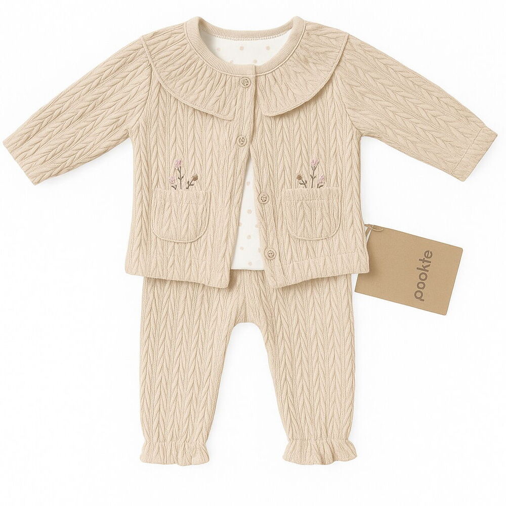 3021 Kız Bebek Çıtır Çiçek Hırkalı 3'lü Takım * Kumaş İçeriği ; %100 Pamuk * Ürün İçeriği ; 3 parçadan oluşmaktadır. * Bu üründe yüksek kaliteli pamuk kullanılmıştır. Doğaya duyarlı, bebek cildi ile uyumlu. Bebeğiniz için özenle tasarlandı. * kullanılan her malzeme antialerjik olup, hassas bebek cildi ile uyumludur. * Kullanımı oldukça rahattır. * Yumuşak ve pamuklu dokusu sayesinde bebeğinizin cildi ile uyumludur. * Modern tasarımı ile bebeğinize şıklık katar. * 30 derecede ters çevirerek yıkamanız önerilir. * Orta sıcaklıkta ütülemeniz tavsiye edilir. * Ürünlerimiz bebeğinizin sağlığı düşünülerek birinci sınıf hammaddelerden üretilmiştir. * Bebeğiniz için zararlı kimyasallar içermez.