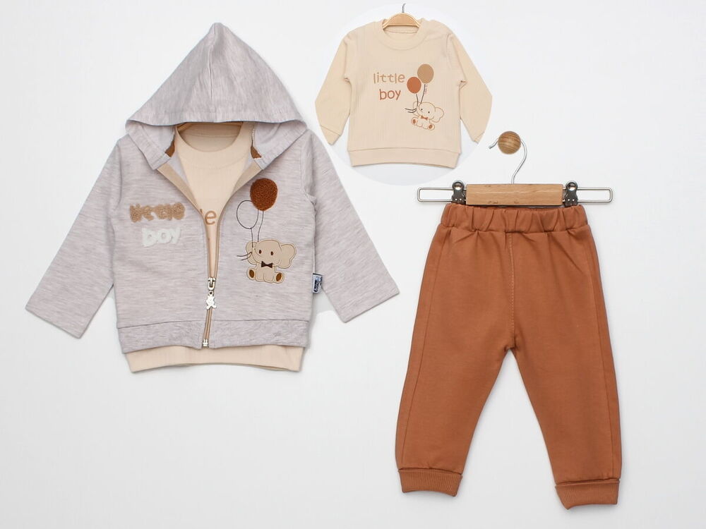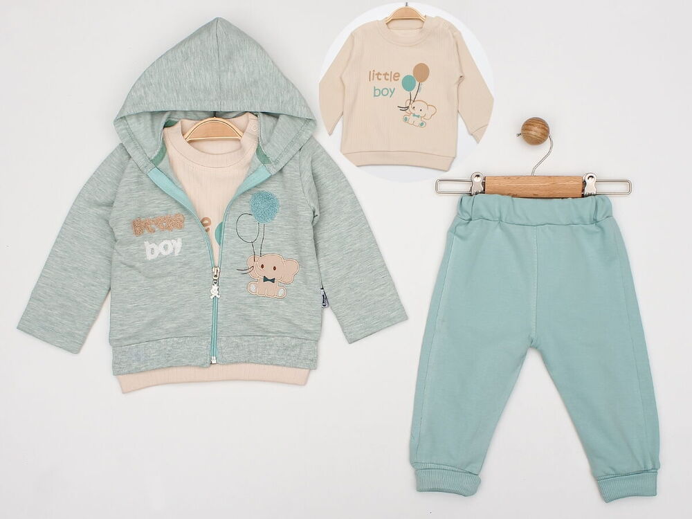 644P Bebek Balonlu Fil Hırkalı 3'lü Takım * Kumaş İçeriği ; %100 Pamuk * Ürün İçeriği ; 3 parçadan oluşmaktadır. Hırka , Alt ve Uzun kol body * Bu üründe yüksek kaliteli pamuk kullanılmıştır. Doğaya duyarlı, bebek cildi ile uyumlu. Bebeğiniz için özenle tasarlandı. * Bebeğiniz için üretilen bu ürün % 100 Pamuk ipliği ile dokunmuştur. kullanılan her malzeme antialerjik olup, hassas bebek cildi ile uyumludur. * Kullanımı oldukça rahattır. * Yumuşak ve pamuklu dokusu sayesinde bebeğinizin cildi ile uyumludur. * Modern tasarımı ile bebeğinize şıklık katar. * 30 derecede ters çevirerek yıkamanız önerilir. * Orta sıcaklıkta ütülemeniz tavsiye edilir. * Ürünlerimiz bebeğinizin sağlığı düşünülerek birinci sınıf hammaddelerden üretilmiştir. * Bebeğiniz için zararlı kimyasallar içermez.