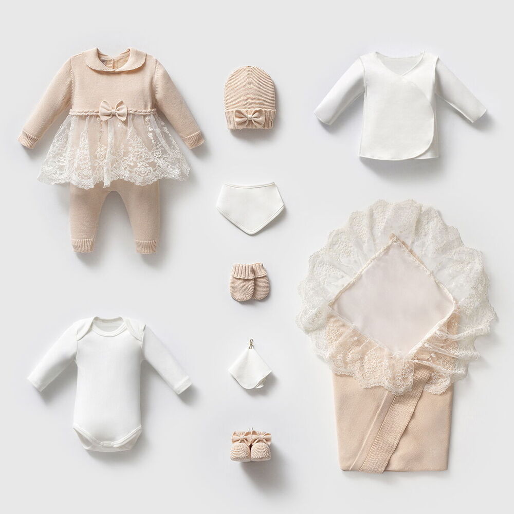 8342N Kız Bebek Dantelli Triko 10'lu Kutulu Naturel Hastane Çıkış Seti * Kumaş İçeriği ; %100 Pamuktur * Ürün İçeriği ; 10 parçadan oluşmaktadır. * Bu üründe yüksek kaliteli pamuk kullanılmıştır. Doğaya duyarlı, bebek cildi ile uyumlu. Bebeğiniz için özenle tasarlandı. * Bebeğiniz için üretilen bu ürün % 100 Pamuk ipliği ile dokunmuştur. kullanılan her malzeme antialerjik olup, hassas bebek cildi ile uyumludur. * Kullanımı oldukça rahattır. * Yumuşak ve pamuklu dokusu sayesinde bebeğinizin cildi ile uyumludur. * Modern tasarımı ile bebeğinize şıklık katar. * 30 derecede ters çevirerek yıkamanız önerilir. * Orta sıcaklıkta ütülemeniz tavsiye edilir. * Ürünlerimiz bebeğinizin sağlığı düşünülerek birinci sınıf hammaddelerden üretilmiştir. * Bebeğiniz için zararlı kimyasallar içermez. * Azo-Free boya ve Nikel-Free aksesuarlar ile uluslararası üretim teknikleri ve güvenlik standartlarına sahiptir.