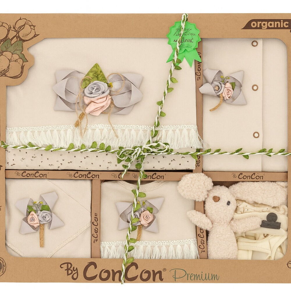 CC1635 Bebek Fiyonklu Lüx Organic 10'lu Kutulu Hastane Çıkış Zıbın Set * Lüx, Premium kalitede ve premium serisi 10'lu Organic Hastane Çıkış Seti * GOTS Sertifikalı * Bu üründe yüksek kaliteli pamuk kullanılmıştır. Doğaya duyarlı, bebek cildi ile uyumlu. Bebeğiniz için özenle tasarlandı. * Bebeğiniz için üretilen bu ürün % 100 Pamuk ipliği ile dokunmuştur. kullanılan her malzeme antialerjik olup, hassas bebek cildi ile uyumludur. * Kullanımı oldukça rahattır. * Yumuşak ve pamuklu dokusu sayesinde bebeğinizin cildi ile uyumludur. * Modern tasarımı ile bebeğinize şıklık katar. * 30 derecede ters çevirerek yıkamanız önerilir. * Orta sıcaklıkta ütülemeniz tavsiye edilir. * Ürünlerimiz bebeğinizin sağlığı düşünülerek birinci sınıf hammaddelerden üretilmiştir. * Bebeğiniz için zararlı kimyasallar içermez.